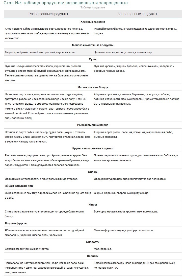 Диета №4 (стол №4 по Певзнеру) назначается при острых и хронических заболеваниях кишечника, а также функциональных расстройствах кишечника, синдроме раздражённого кишечника.