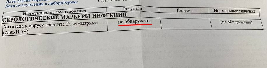 Антитела к вирусу гепатита D не выявлены: